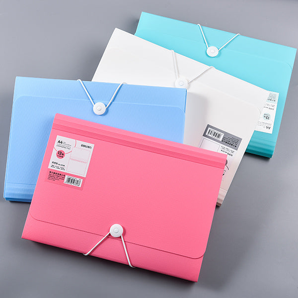 This expandable document organizer is the perfect solution for those drowning in a sea of papers. It features multiple transparent, compartmentalized sections with dividers and colored labels for easy sorting. The outer cover, made of a rigid, textured synthetic material, provides a professional look and protects the contents from damage.