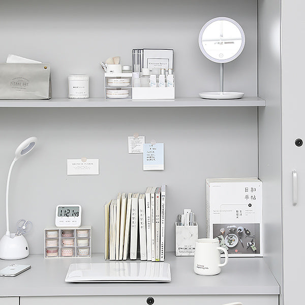 Desktop organization in home offices, study areas, workspaces, desks, shelves, or tabletops. Great for small spaces or minimalist setups.