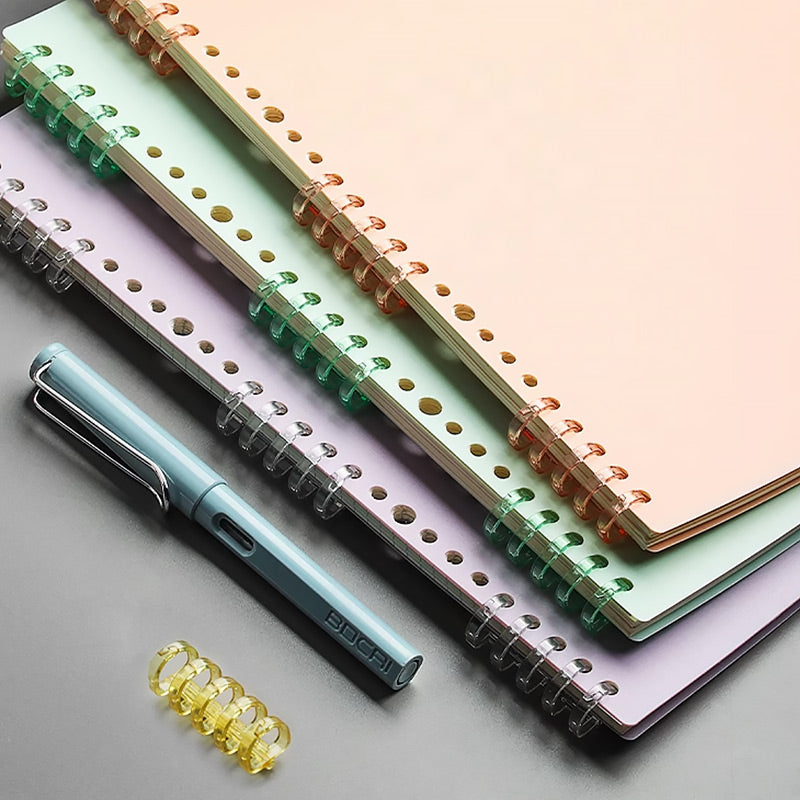 This set of modular plastic binding comb spines offers a modern and practical solution for organizing notebooks. Made from durable plastic, they come in various colors and have a unique design that allows for 360° rotation. These spines can be easily clipped onto pre – perforated notebooks, enabling effortless page addition, removal, and organization.
