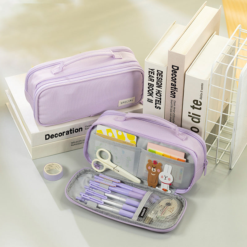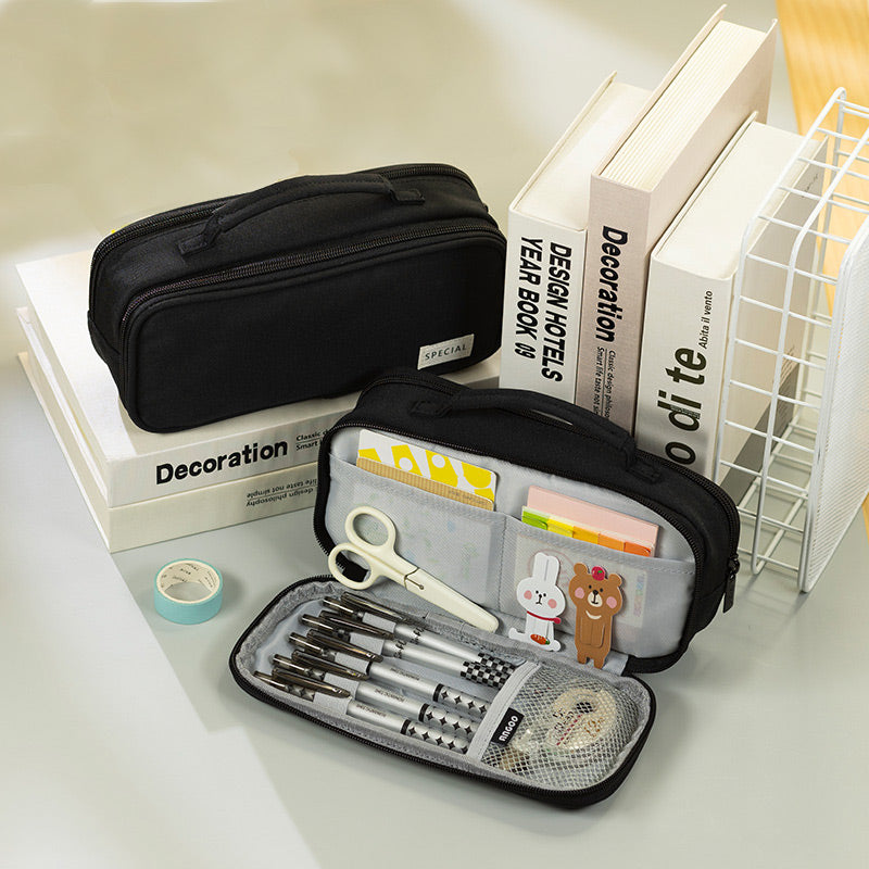 This stationery organizer pouch is a practical solution for anyone who needs to keep their stationery tools well – organized. It offers a large capacity to numerous items and features multiple compartments for efficient sorting. With its durable construction, it is built to last through daily use.