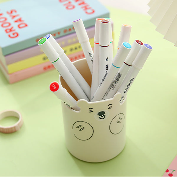 This bear-themed pencil pot is a wonderful addition to any workspace. Its pastel blue, cream, and pink colors, along with the whimsical bear face designs, bring a touch of cuteness and charm. Made of smooth matte plastic, it’s not only a great stationery organizer but also has dual functionality to serve as a phone stand.