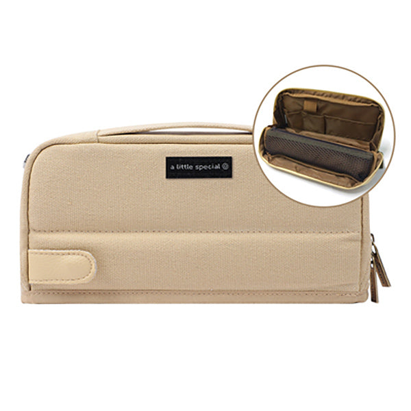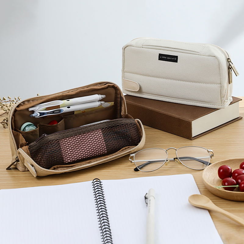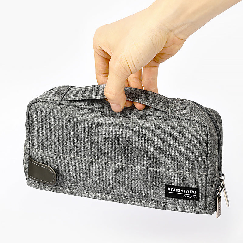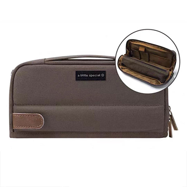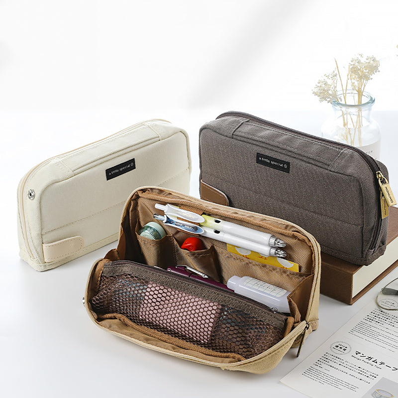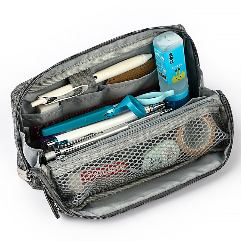 Textured-fabric Leather-accented Multi-compartment Pencil Case
