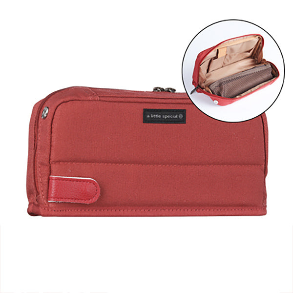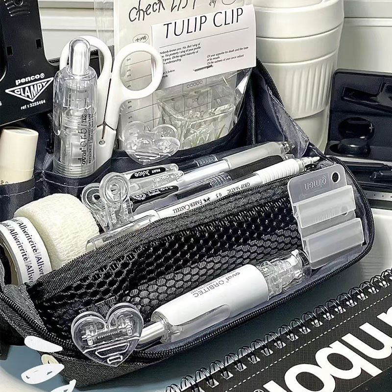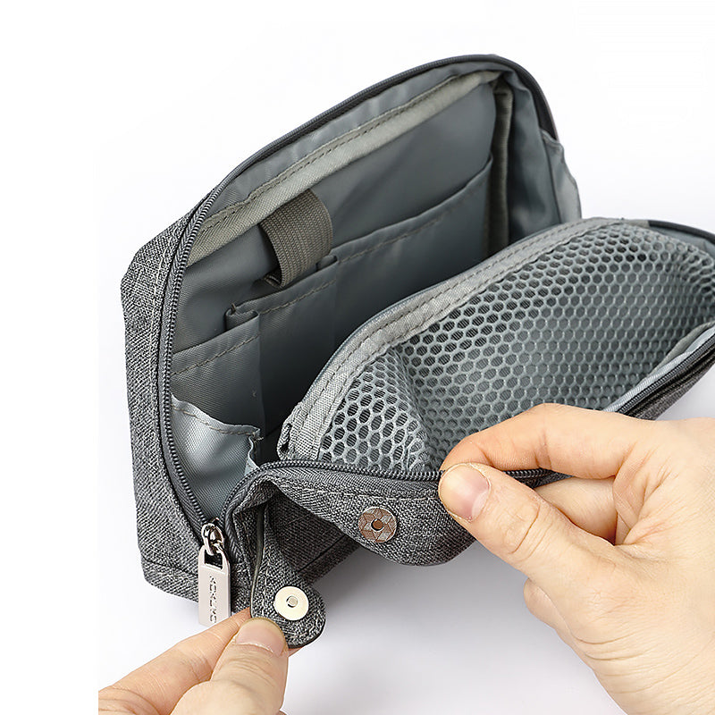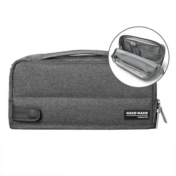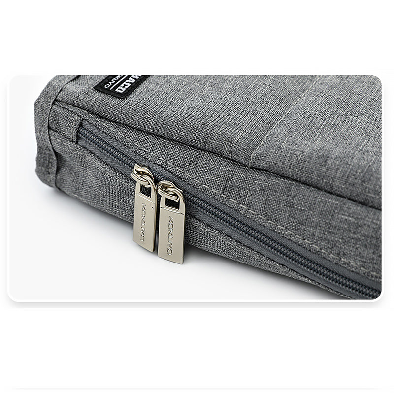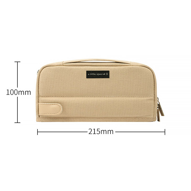 Textured-fabric Leather-accented Multi-compartment Pencil Case