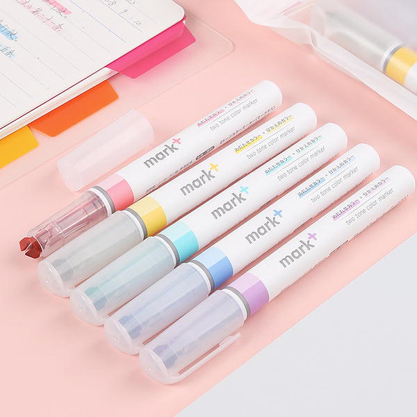 This highlighter set offers a practical and stylish solution for those who are tired of searching for the right marker. Each highlighter in the set is a two – tone color marker with dual – line effects. The minimalist design features a white barrel with pastel accents, and it comes in a portable storage case.
