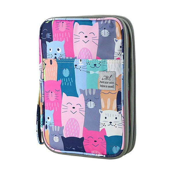 Geometric-motif Multi – Compartment Pen Organizer Bag