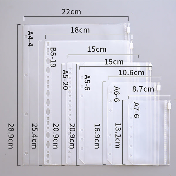 | Size | A4: L289 x W220 mm, A5: L209 x W150 mm, A6: L169 x W106 mm, A7: L132 x W87 mm, B5: L254 x W180 mm |