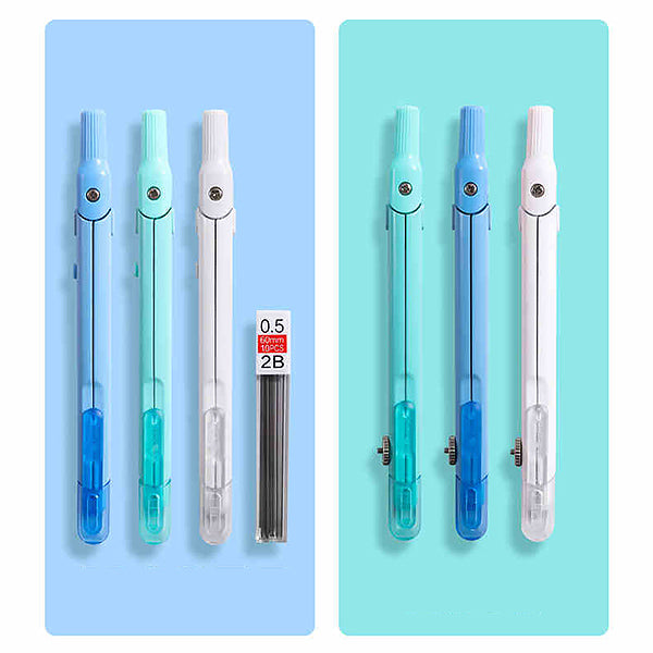 This pen-style drafting compass is a remarkable tool that combines portability and functionality. Its pen-like design allows it to fold compactly, easily fitting into a pencil case or notebook. With metallic legs for rigidity and a plastic body for lightness, it’s perfect for precise drawing in various fields.