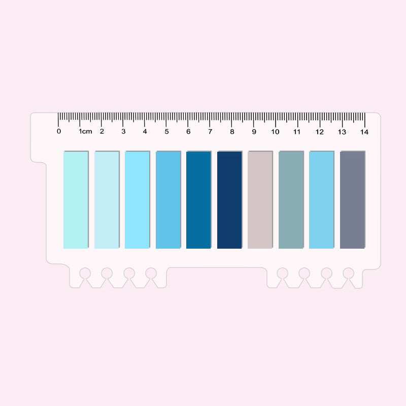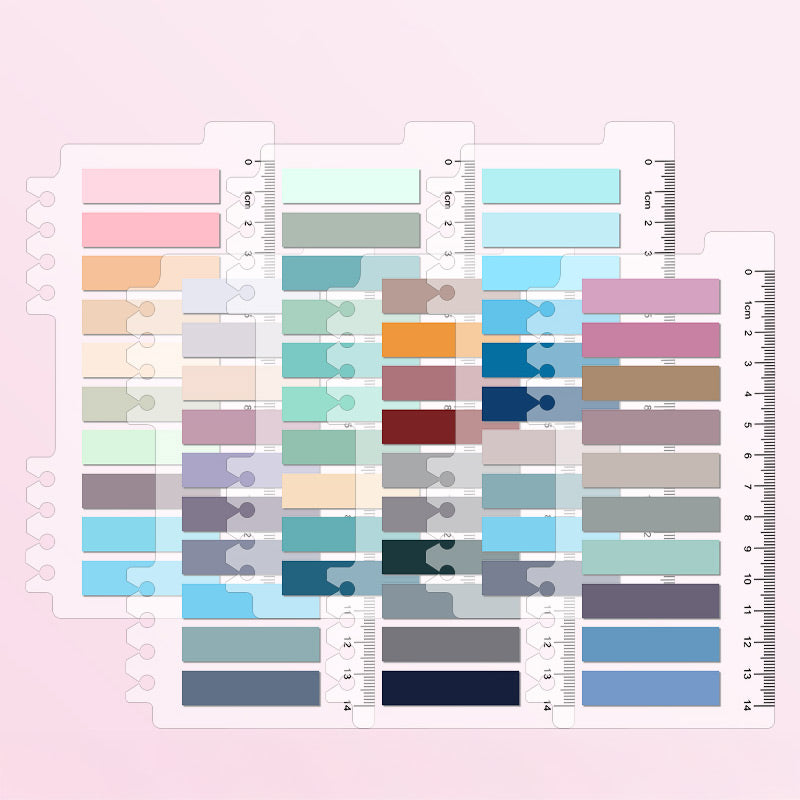 This is a color – coded transparent ruler crafted from durable plastic. It features a clear 0 – 14 cm measurement scale on top and multiple uniform rectangular color blocks below. The bottom has tabs for easy attachment, making it a great tool for both organization and decoration.