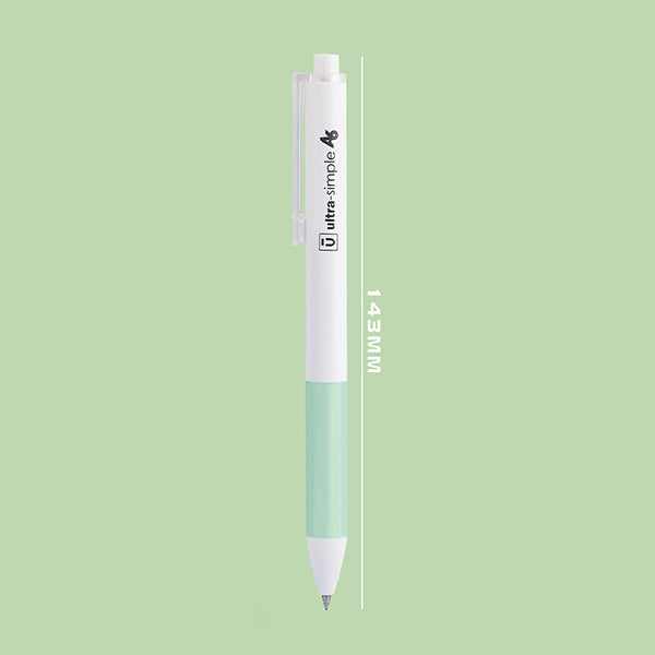 - Press – to – write mechanism: A smooth, white plastic button at the top for retracting/extending the tip.