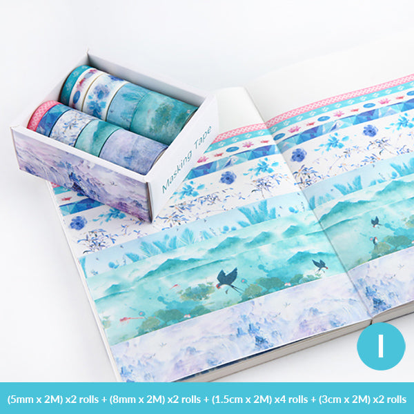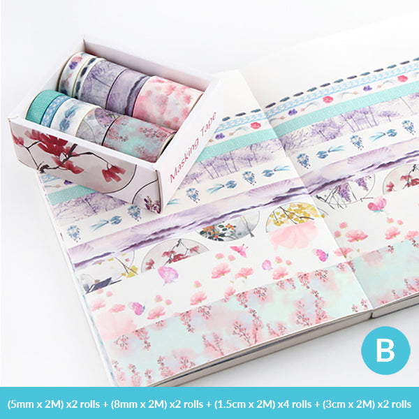 Enhance your creative projects with this premium decorative washi tape box set. It offers a wide range of patterns and widths, making it perfect for adding a touch of style to various crafts.