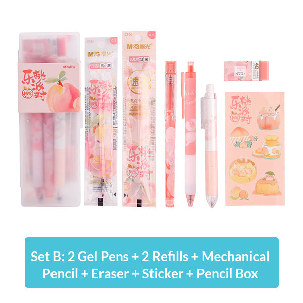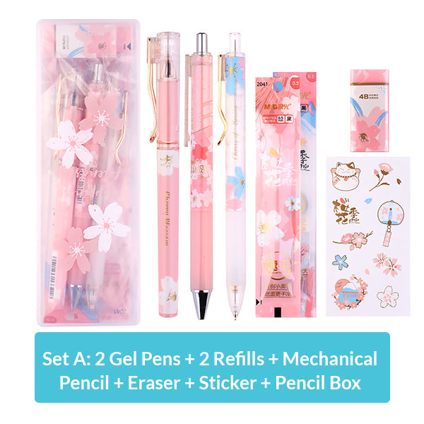 | Set A / B Contents | 2 x Gel Pens, 2 x Refills, 1 x Mechanical Pencil, 1 x Erasable, 1 x Sticker, 1 x Pencil Box |