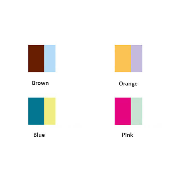| Color | Blue, Brown, Orange, Pink |