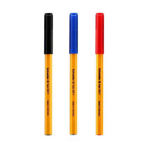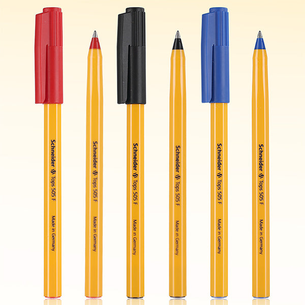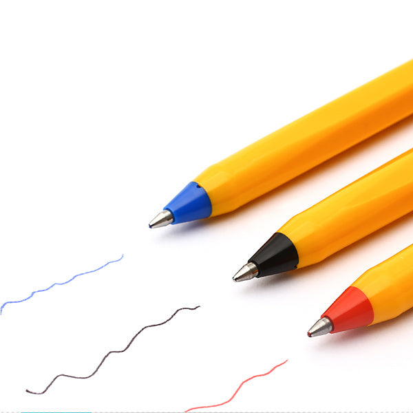 This ballpoint pen pack offers a great writing experience. The set comes with pens having a bright yellow plastic body that is smooth and rigid, providing comfort during use. The color – coded caps in black, blue, and red, with a ridged surface, not only look appealing but also offer a secure grip for writing.