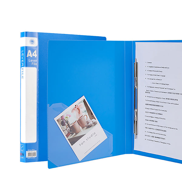 This lever arch file is a practical solution for organizing A4 documents. With its bright blue and black minimalist design, it not only looks sleek but also offers great functionality. Crafted from durable materials like rigid plastic covers and a metallic lever mechanism, it effectively protects and secures your papers.