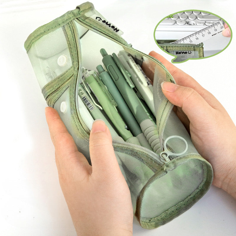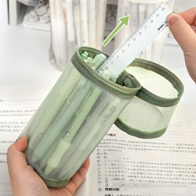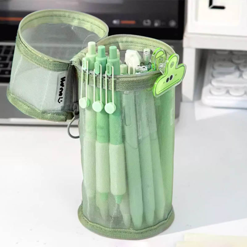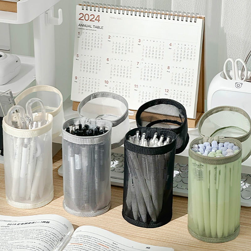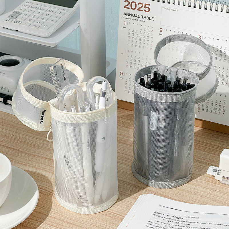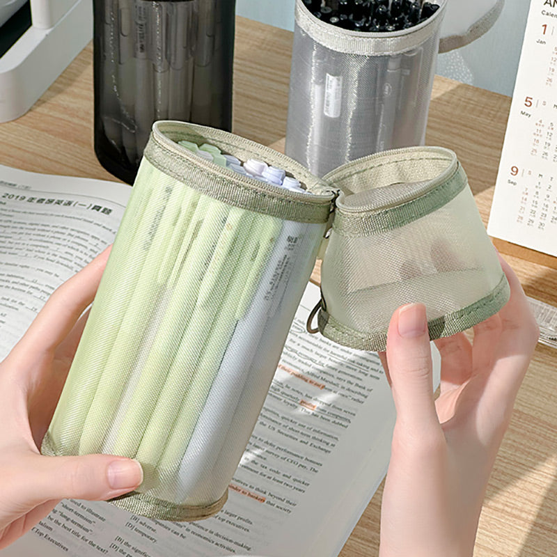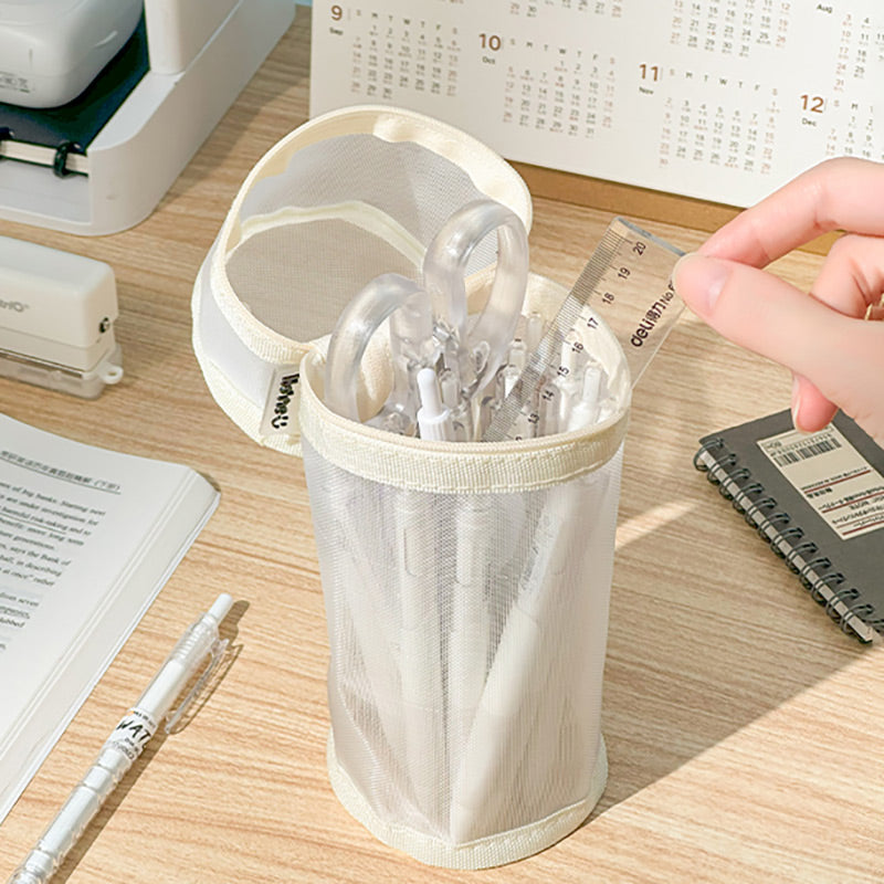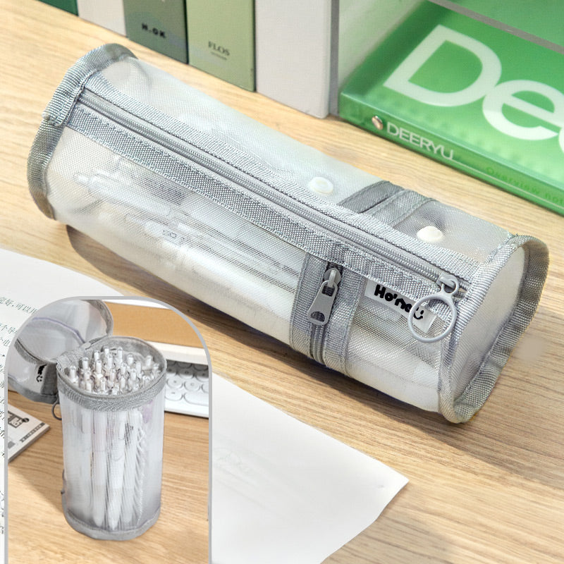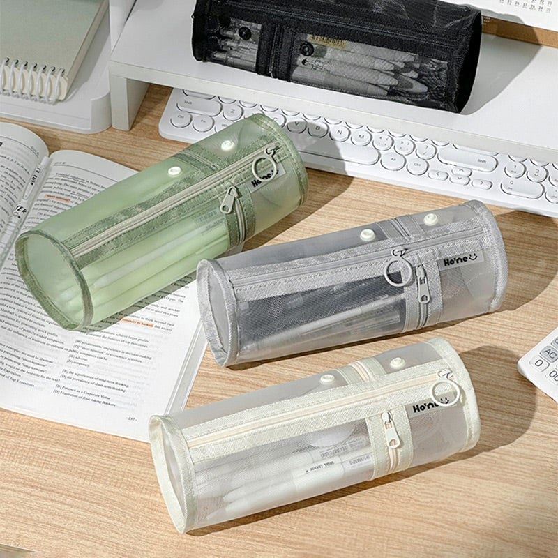 Minimalist Cylindrical Transparent Mesh Pencil Case