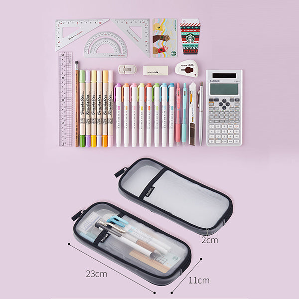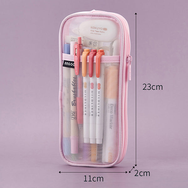This pencil case is a practical and stylish solution for organizing your stationery. Its transparent mesh design allows you to easily see what’s inside, keeping you organized and ready for any task. The durable construction ensures it can withstand daily use.