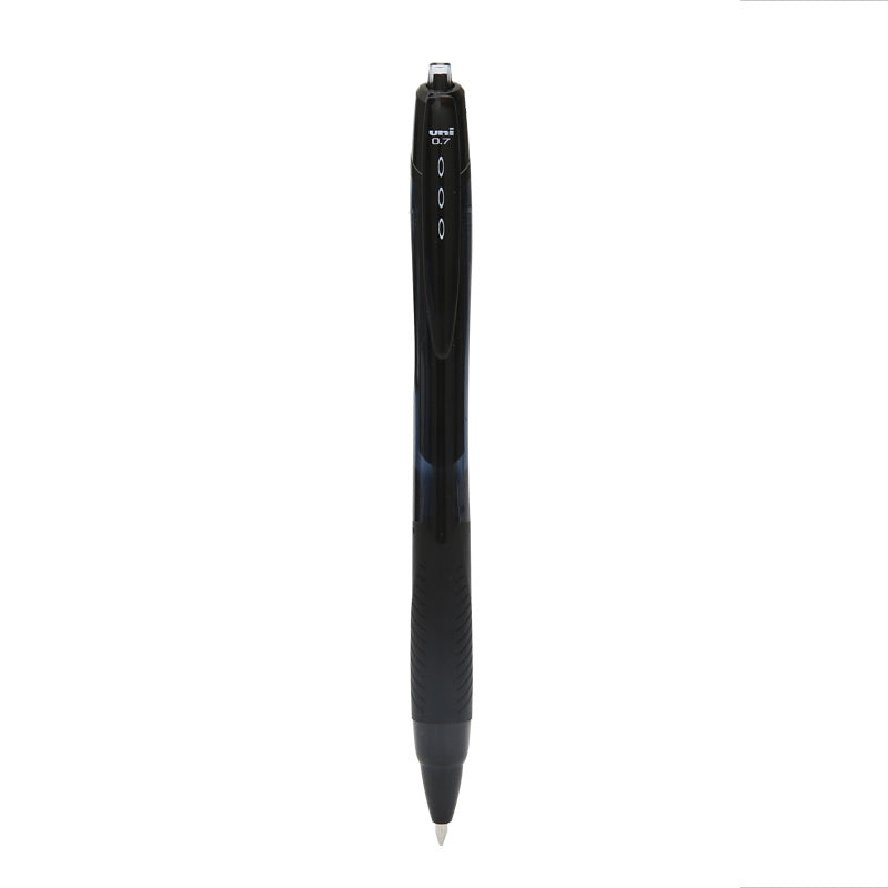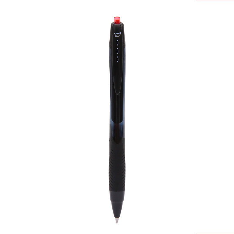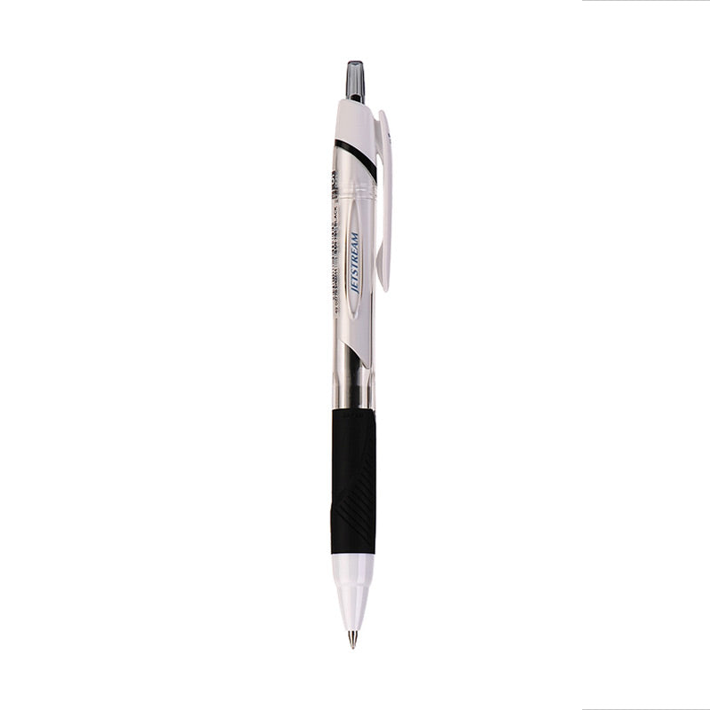 This retractable rollerball pen is a perfect blend of style and functionality. It has a smooth and durable plastic body, along with a textured grip section for comfortable writing. The transparent window on the pen allows you to easily monitor the ink level, making it a practical choice for daily use.