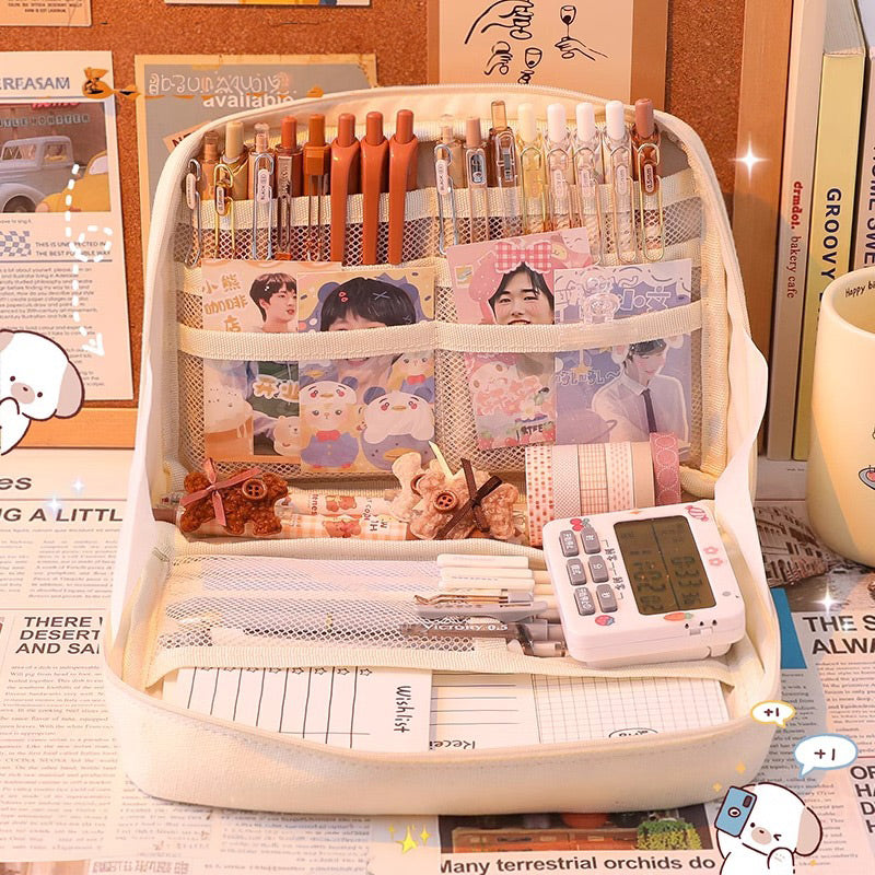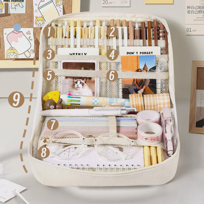 Students organizing school supplies, stationery enthusiasts storing decorative items, and daily office or study use to keep supplies like calculators and planners organized.