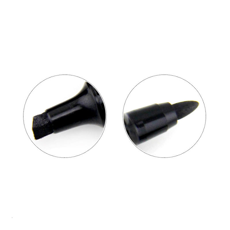 - Dual – tip system with a thick flat tip for bold lines and a thin pointed tip for fine details