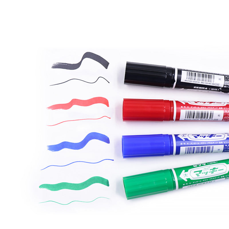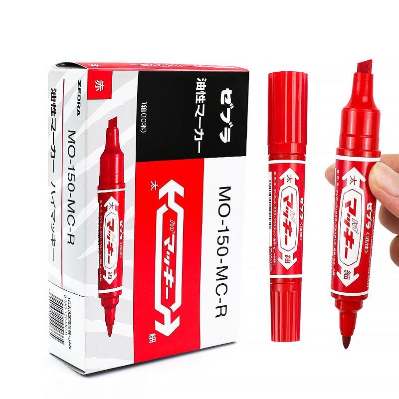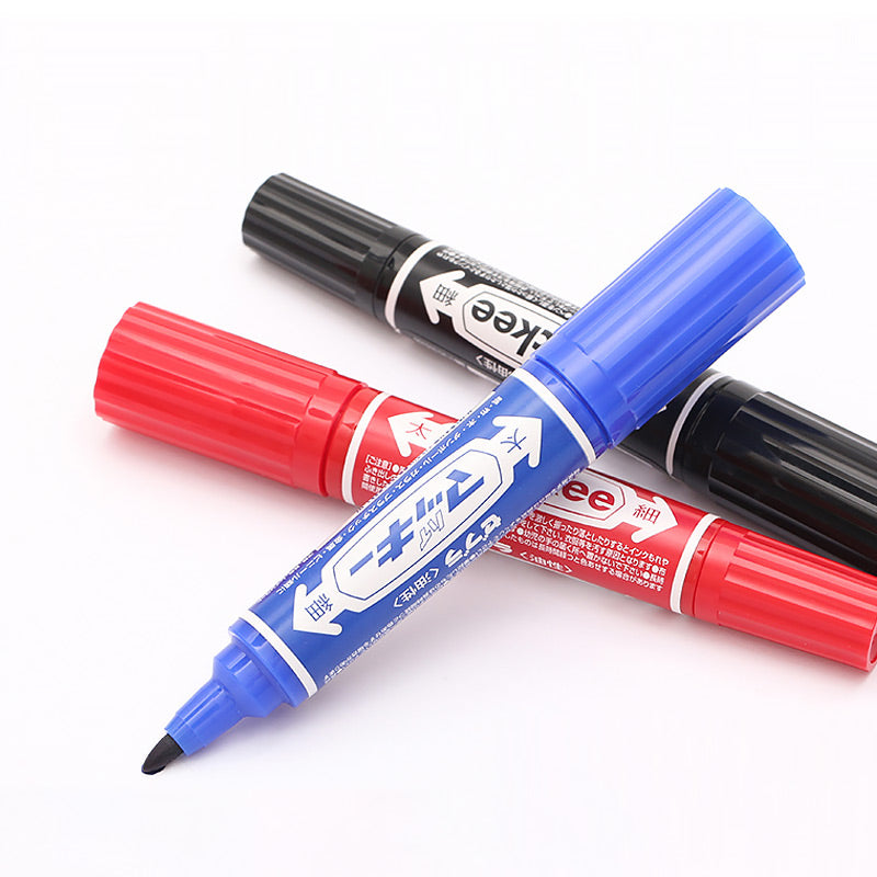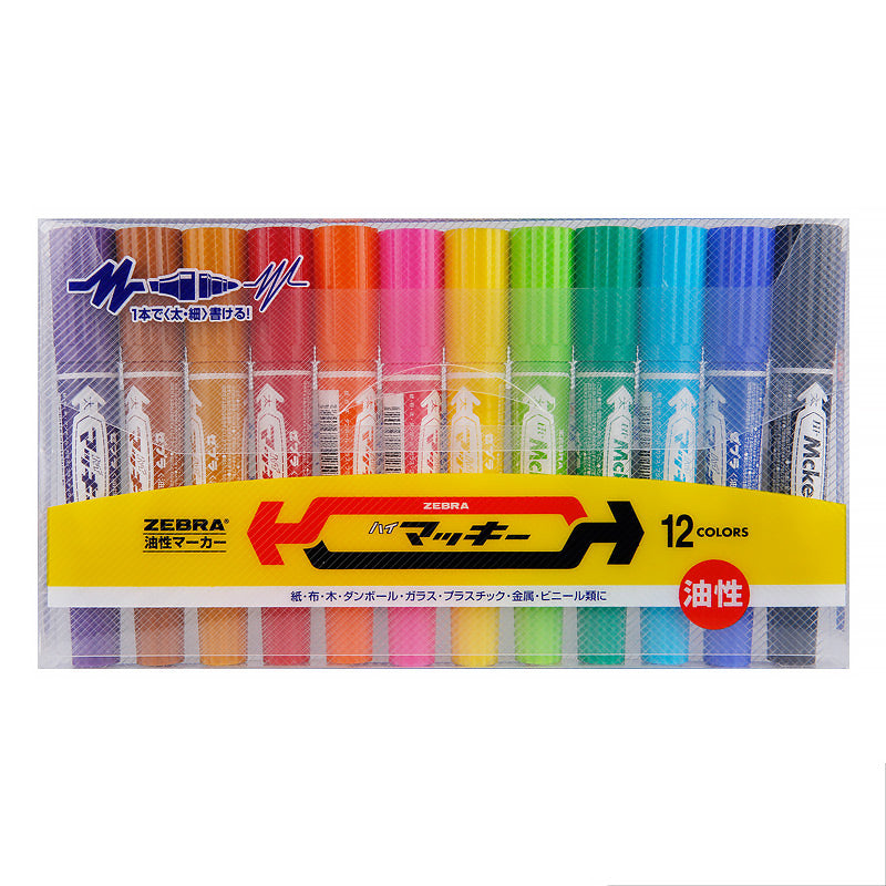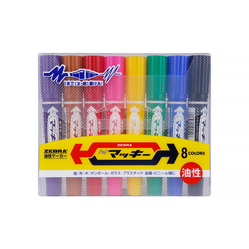 This is an oil – based permanent marker set. The markers feature a dual – tip design with a thick flat tip and a thin pointed tip, allowing for both bold and detailed markings. They come in a variety of colors and are packaged in color – coded cardboard boxes with plastic sleeves, suitable for use on multiple surfaces like paper, fabric, wood, plastic, and metal.