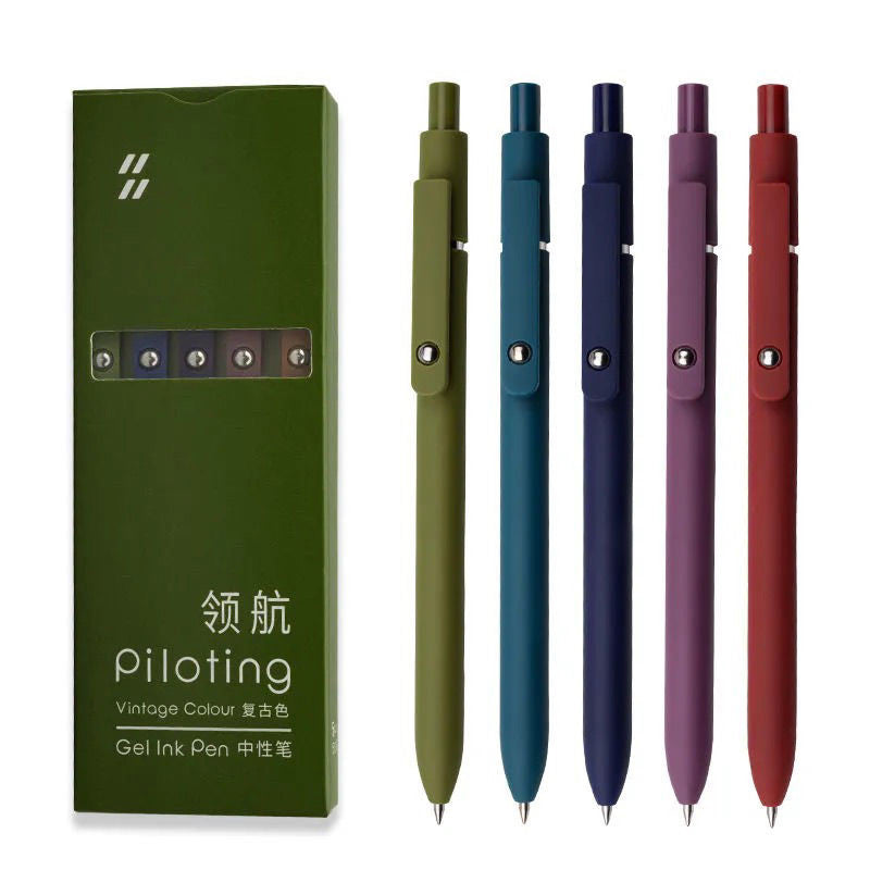 This is a set of five minimalist retractable gel pens that offer a seamless writing experience. The pens feature a retractable click mechanism for easy use and a matte – finished plastic body, which not only looks stylish but also provides a non – slip grip. With their pastel, Morandi, and vintage colors, these pens are both aesthetically pleasing and functional.